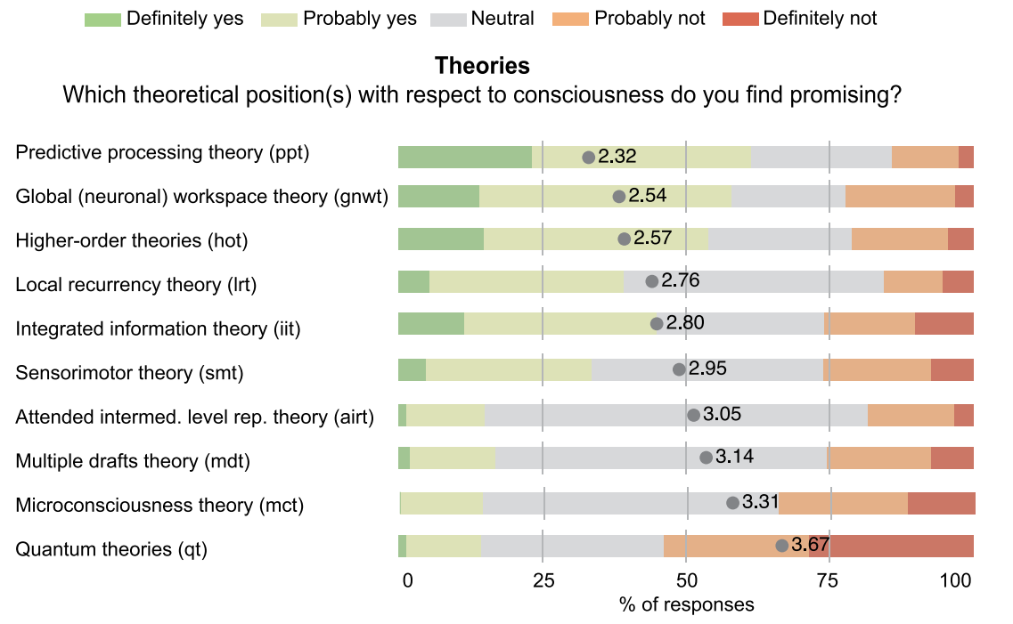 Predictive Processing Theory (PPT): Gaining traction in recent years, this theory asserts that consciousness involves hierarchical prediction error minimization.