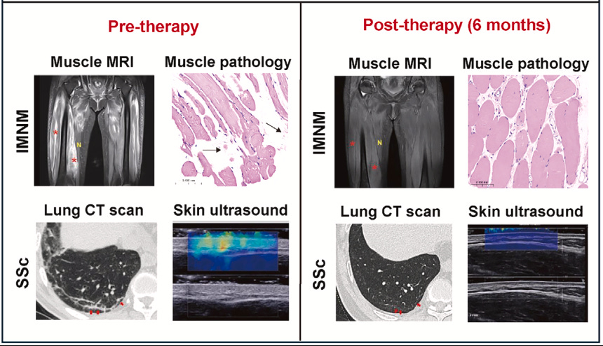 The trial results were remarkable. By using CAR-T cells targeting the CD19 protein on B cells, which play a central role in autoimmunity, TyU19 was able to deplete these cells effectively. The patient with IMNM experienced a dramatic improvement in muscle function, while both dcSSc patients saw a reversal of fibrosis in vital organs, including the skin, lungs, and heart—an outcome rarely seen with existing treatments (Figure 4). Not only was the therapy effective, but it was also well-tolerated, with no serious adverse events. These results suggest that allogeneic CAR-T therapies, once reserved for cancer treatment, may soon be a game-changer for autoimmune diseases as well. Moreover, this trial points toward solving the scalability challenges traditionally associated with personalized CAR-T therapies.