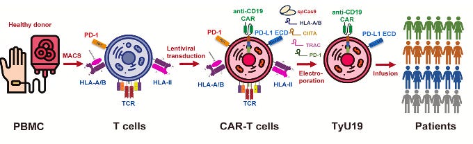One of the primary challenges with using donor-derived, or allogeneic, CAR-T cells is the risk of the patient’s immune system recognizing these foreign cells and launching an attack, leading to rejection or allergic response. A similar challenge is seen in the field of organ transplantation. To overcome this, researchers have genetically engineered the donor CAR-T cells to reduce their visibility to the immune system.