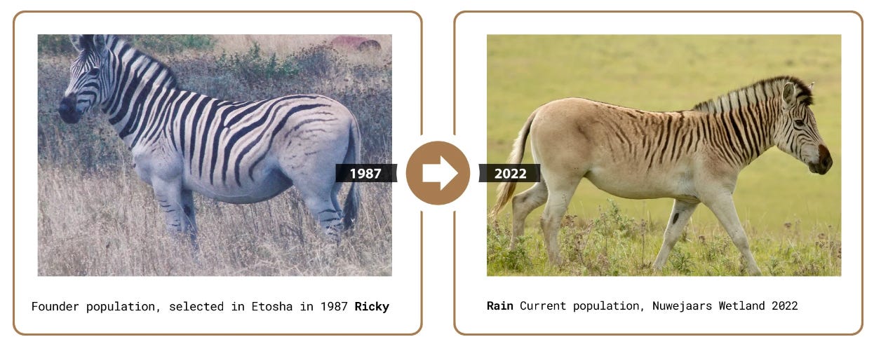 The Quagga Project, an ambitious conservation effort, has sparked both excitement and debate by attempting to “resurrect” the quagga, a zebra relative that once roamed Africa's plains before going extinct in 1883. Instead of using cloning or genetic engineering, researchers relied on selective breeding to recreate the quagga’s distinctive brown coat and partial striping (Figure 3). This approach has led some to call it the “Jurassic Park” of zebras, but critics question if the Rau quagga, as it is now called, is truly a quagga or simply a zebra with fewer stripes. Despite the controversy, ten of these Rau quaggas now roam in a South African preserve, showing just how closely scientists have come to recreating this lost creature’s appearance.