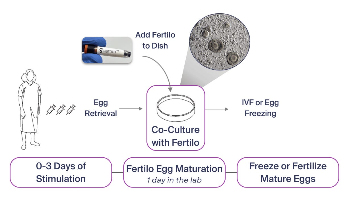 In vitro fertilization (IVF) has been a frequent topic in this newsletter, exploring how emerging technologies are transforming every stage of the process—from AI-powered embryo selection to the potential of creating eggs from patient-derived stem cells. These innovations aim to alleviate the stress, pain, and complexity inherent in traditional IVF. Typically, IVF involves 10–14 days of hormonal stimulation of the potential mother to mature oocytes, followed by egg retrieval, fertilization, and embryo development to the blastocyst stage before implantation. This rigorous process often requires multiple cycles, making simplifications to any step, particularly oocyte maturation, a welcome advancement.