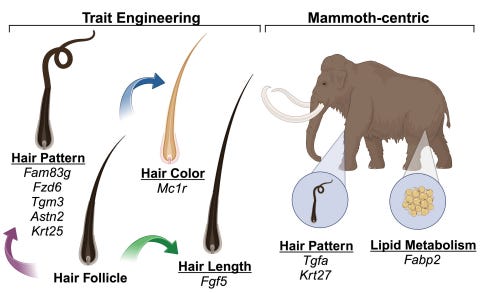 Last week, Colossal had a big announcement: the successful creation of engineered mice carrying woolly mammoth traits, what is now referred to as the woolly mouse! The genes targeted were associated with hair growth and metabolism, producing mice with thick, fluffy coats that genuinely reassemble miniature woolly mammoths. The pictures are absolutely striking - it’s rare for scientific progress in biotechnology to be so completely communicated in one image. Moreover, they’re shockingly cute.