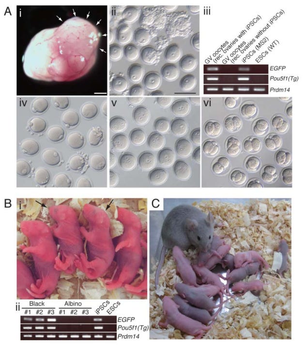 That's fascinating. It doesn't set off any ethical alarm bells, either. Maybe it should; maybe a case could be made that instead of putting all that energy, time, and expense into making babies, people who want kids should be encouraged adopt them. That case won't be made by me, though. Could unwanted genetic tinkering happen? Can't it happen now, with current IVF procedures? It seems as though if anything the ethical problems cited with IVF technology should be mitigated with iPSC oocytes. The whole "every sperm is sacred" problem goes away. Although not the fertilized embryo problem, I guess.
