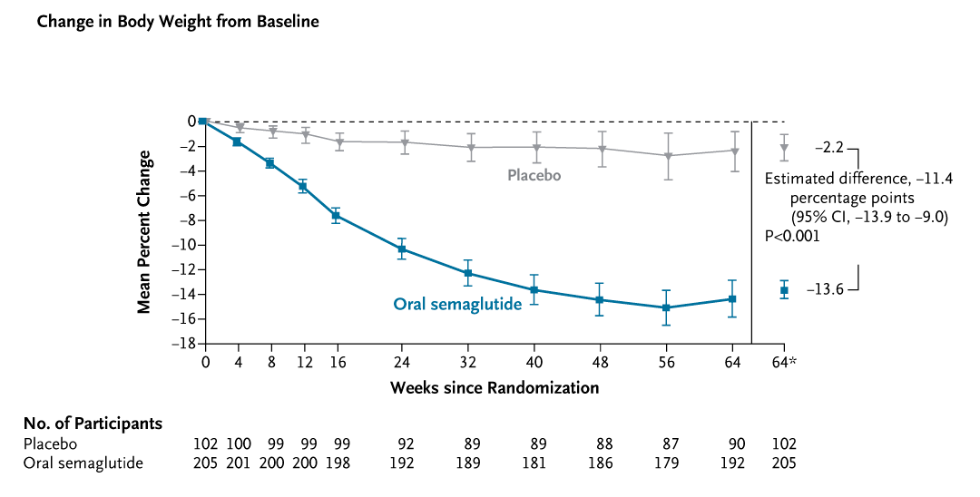 Wharton S, Lingvay I, Bogdanski P, Duque do Vale R, Jacob S, Karlsson T, Shaji C, Rubino D, Garvey WT. Oral semaglutide at a dose of 25 mg in adults with overweight or obesity. New England Journal of Medicine. 2025 Sep 18;393(11):1077-87.