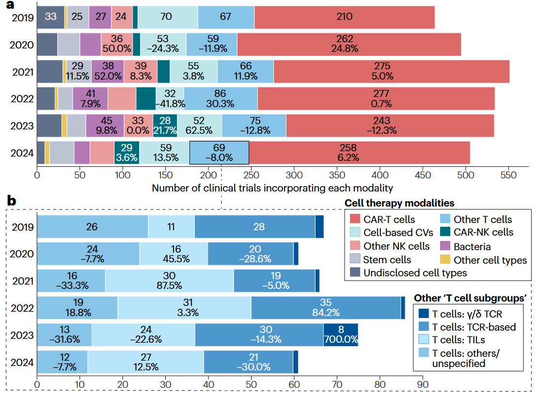 Benthani, F., Upadhaya, S., & Zhou, A. (2025). Cancer cell therapies: Global clinical trial trends and emerging directions. Nature Reviews Drug Discovery, 24(12), 898–899. https://doi.org/10.1038/d41573-025-00180-1