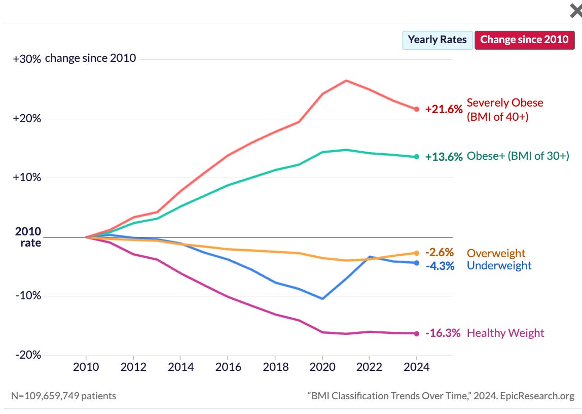Obesity is not only an aesthetic issue. It is a chronic disease and inflammatory state that raises risk for hypertension, dyslipidemia, type 2 diabetes, heart disease and stroke, multiple cancers, chronic kidney disease, and fatty liver disease (CDC). Creating a biotech solution to obesity will have a huge improvement in the healthspan and lifespan we see in our society, as well as impact overall healthcare costs and usage. The good news is that we are getting close.